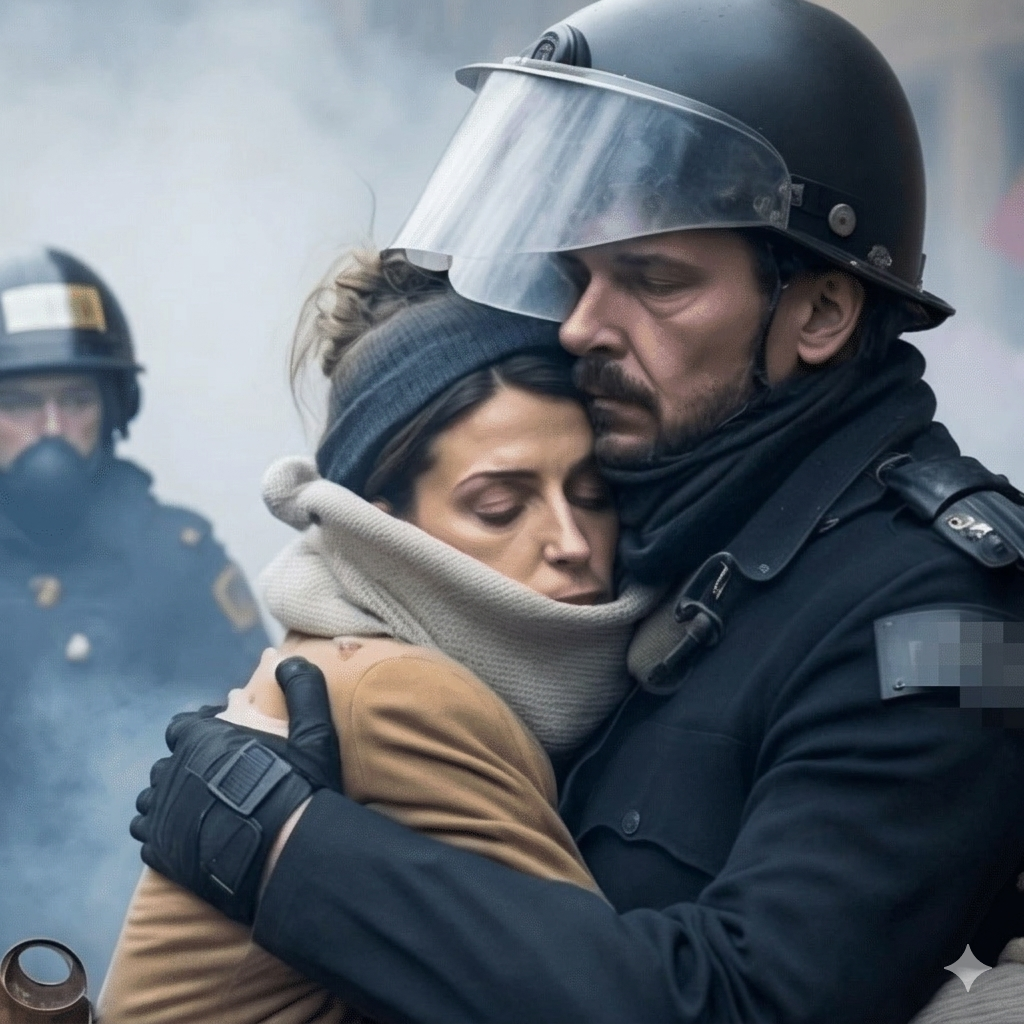 Le policier CRS embrassant une manifestante Arte « Le dessous des images » • 2023