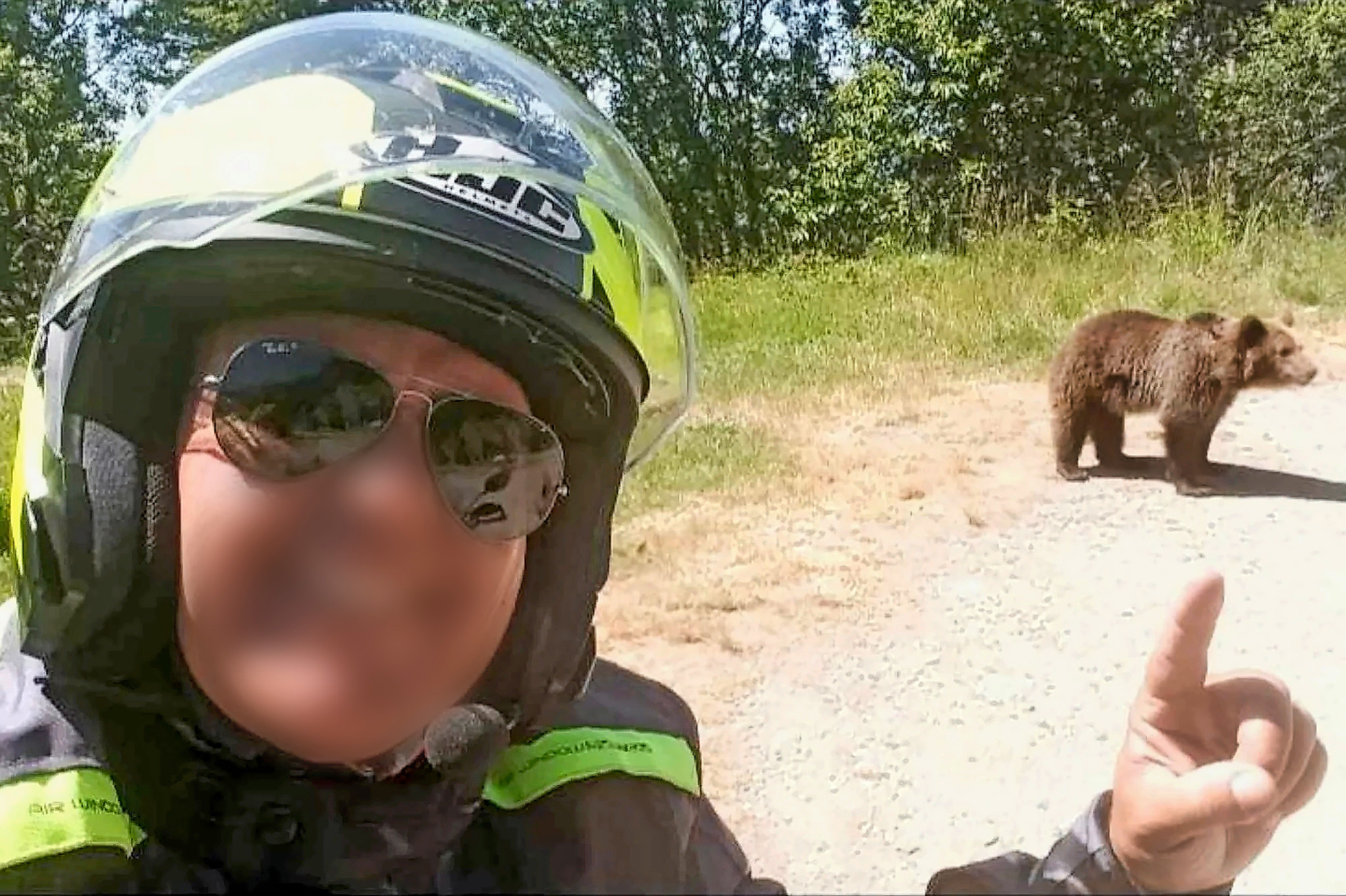 CL’ours faisant un « selfie » avec un randonneur en Slovaquie